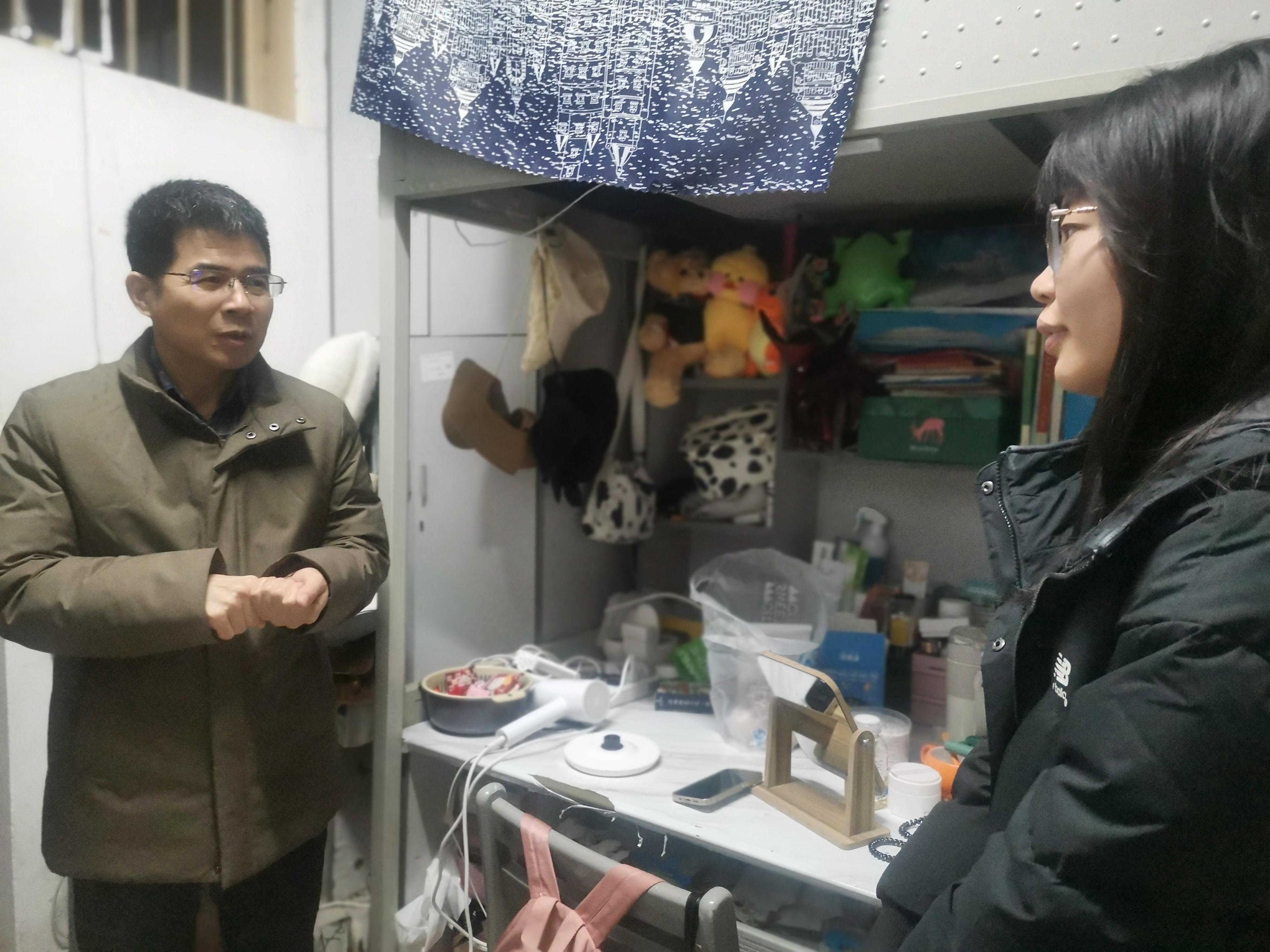寒冬送温暖,党恩暖民心。为深入学习贯彻习近平新时代中国特色社会主义思想和党的二十大精神,加强激励、关怀和帮扶。1月29日上午,院党委书记符韵林来到学生宿舍和实验室,看望寒假期间留校继续学习的学生,了解同学们的学习和生活情况。