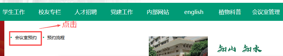 1 打开学校主页,点击“机构设置” 2 找到“vwin德赢ac米兰官网”并点击 3 选择“会议室管理”、点击“会议室预约” 4 输入文件系统的账号及密码 5 点击“会议室预约”、选择并点击可预约会议室 6 选择会议时间 7 填写信息并保存 8 提前到201办公室领取钥匙(请于行政上班时间领取)